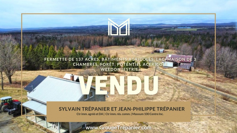 Weedon (Estrie) : Découvrez cette superbe fermette de 137, 39 acres, nichée dans un environnement paisible avec une vue imprenable sur la vallée et sur la rivière Saint-François, visible en contrebas de la propriété. Offrant un fort potentiel pour une grande variété de projets agricoles, cette propriété comprend une maison ...